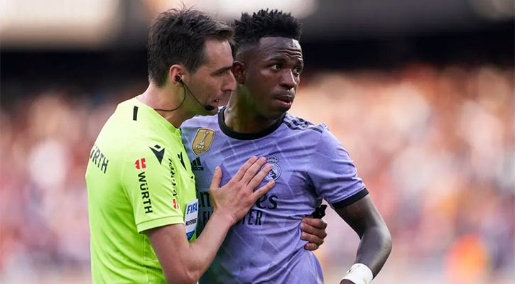 লা লিগার ম্যাচে রোববার ভালেন্সিয়ার মাঠে ভিনিসিউসের বর্ণবাদের শিকার হওয়ার ঘটনায় খেলা বন্ধ থাকে মিনিট দশেক। ওই ম্যাচের শেষ দিকে ধাক্কাধাক্কিতে জড়িয়ে পড়ায় ঘটনায় ভিএআর দেখে ভিনিসিউসকে লাল কার্ড দেখান রেফারি রিকার্দো দে বুর্গোস বেনগয়চিয়া।