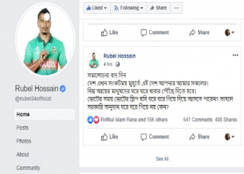 বৃহস্পতিবার সামাজিক যোগাযোগমাধ্যম ফেসবুকে রুবেল হোসেন লিখেছেন, ‘সমালোচনা বাদ দিন। দেশ এখন সংকটময় মুহূর্তে। এই দেশ আপনার আমার সকলের। নিম্ন আয়ের মানুষদের ঘরে ঘরে খাবার পৌঁছে দিতে হবে। ভোটের সময় ভোটের স্লিপ যদি ঘরে ঘরে গিয়ে দিয়ে আসতে পারেন? তাহলে সরকারি অনুদান ঘরে ঘরে গিয়ে নয় কেন?’