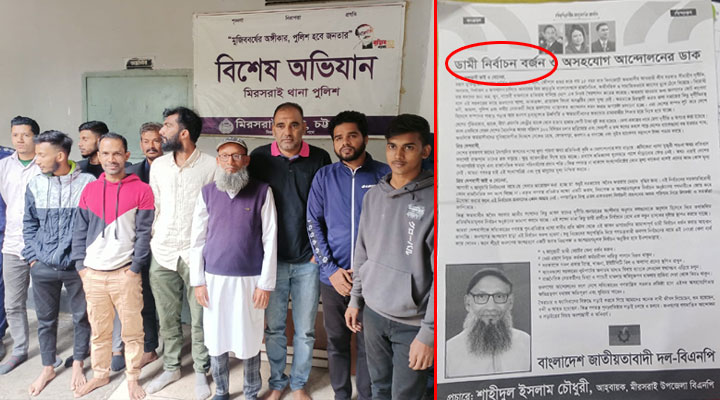 বিএনপি সূত্রে জানা যায়, সরকারের একতরফা নির্বাচন বর্জনে সারাদেশে জনমত সৃষ্টির লক্ষ্যে বিএনপি লিফলেট বিতরণ করে আসছে। কেন্দ্রীয় কর্মসূচির অংশ হিসেবে মিরসরাই উপজেলা বিএনপির আহবায়ক শাহিদুল ইসলাম চৌধুরীর নেতৃত্বে মহাসড়ক সংলগ্ন বিভিন্ন বাজারে লিফলেট বিতরণ করা হয়। এ সময় পুলিশ বিএনপি নেতাকর্মীদের গ্রেফতার করে।