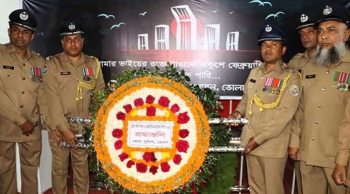 বিনম্র শ্রদ্ধা, যথাযথ মর্যাদা ও পূর্ণ ভাবগাম্ভীর্যের মধ্য দিয়ে অমর একুশে ফেব্রুয়ারির প্রথম প্রহরে ভাষা শহিদদের প্রতি শ্রদ্ধা নিবেদনের মাধ্যমে ভোলা জেলা পুলিশ ‘মহান শহিদ দিবস ও আন্তর্জাতিক মাতৃভাষা দিবস-২০২৪’ পালন করেছে।
