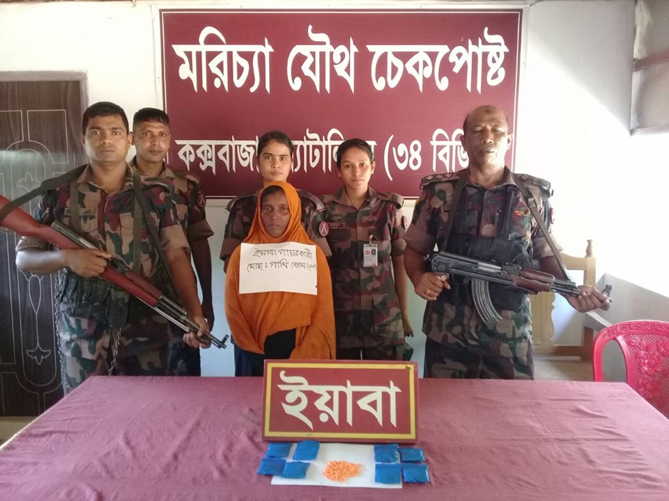 মঙ্গলবার (১৫ অক্টোবর) বেলা ২টার দিকে কক্সবাজার ৩৪ বিজিবি ব্যাটালিয়নের মরিচ্যা যৌথ চেকপোষ্টের সদস্যরা এ অভিযান চালান। আটক মোছাম্মত পাখি বেগম (৩২) চট্টগ্রামের লোহাগাড়া থানার চুনতি গ্রামের মো. ইয়াসিনের স্ত্রী।