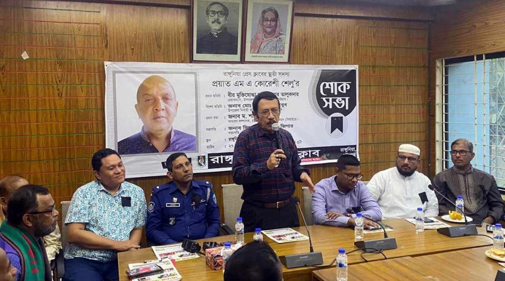 রাঙ্গুনিয়া প্রেসক্লাবের স্থায়ী সদস্য ও দৈনিক দেশ রূপান্তরের রাঙ্গুনিয়া প্রতিনিধি এম এ কোরাশী শেলু’র শোকসভা অনুষ্ঠিত হয়েছে। মঙ্গলবার (২৭ ফেব্রুয়ারি) বিকেলে উপজেলা পরিষদ সম্মেলন কক্ষে রাঙ্গুনিয়া প্রেস ক্লাবের উদ্যোগে এ শোকসভা অনুষ্ঠিত হয়।