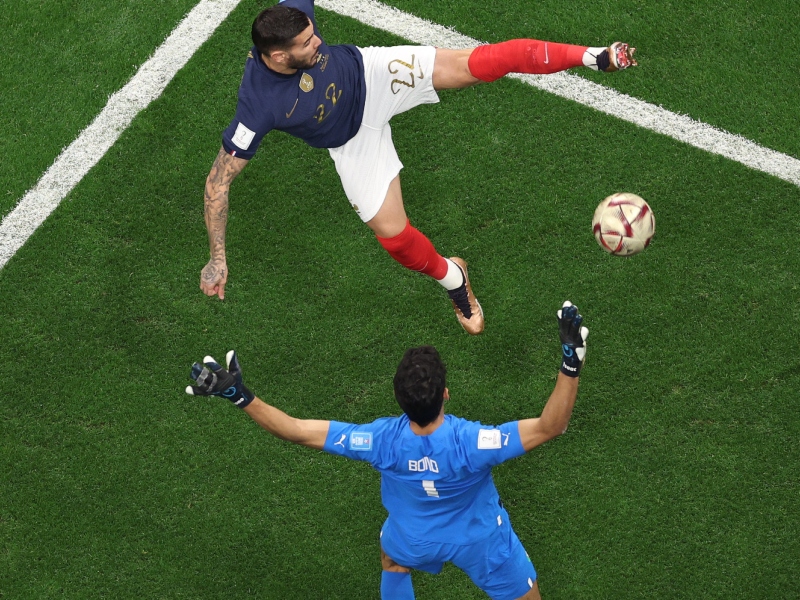 ম্যাচের তখন মাত্র ৬ মিনিট। ডান দিক থেকে আক্রমণে উঠে ডি বক্সে বল বাড়ান অ্যান্তোনিও গ্রিজম্যান। তবে ডি বক্সের ভেতর অলিভিয়ের জিরুড এবং কিলিয়ান এমবাপে মরক্কোর রক্ষণের বাধা ভেঙে শট নিতে পারেননি। এমবাপে কোনো রকমে শট নিলে তা মরক্কোর ডিফেন্ডারের গায়ে লেগে বাঁ দিকে থাকা থিও হার্নান্দেজের কাছে যায়। আর দারুণ এক অ্যাক্রোব্যাটিক শটে গোল করে ফ্রান্সকে এগিয়ে নেন তিনি। আর এতেই প্রথমার্ধে ১-০ গোলে এগিয়ে থেকে শেষ করে ফ্রান্স।