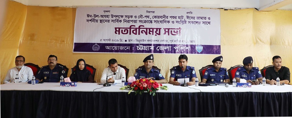 ঈদুল আযহা উপলক্ষে সড়ক ও নৌ-পথ, কোরবানির পশুর হাট, ঈদের জামাত ও দর্শনীয় স্থানের সার্বিক নিরাপত্তা সংক্রান্ত এ মতবিনিময় সভার আয়োজন করে চট্টগ্রাম জেলা পুলিশ।