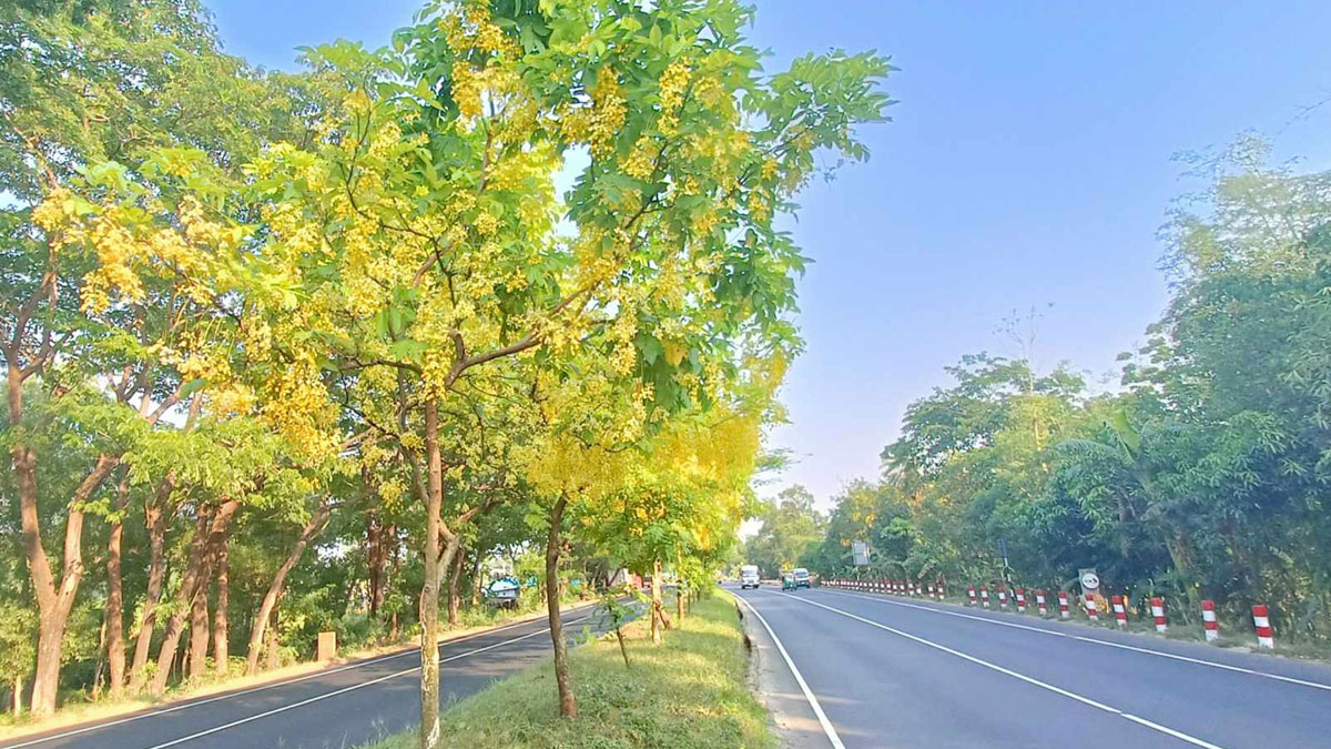 নান্দনিক ফুলের মেলায় বর্ণিল সড়কদ্বীপে পরিণত হয়েছে মাইলের পর মাইল। বৃষ্টিতে এর সৌন্দর্য বেড়ে গেছে আরও কয়েকগুণ। মহাসড়ক এখন সৌন্দর্যের অপরূপ দৃশ্যে পরিণত হয়েছে। বাস কিংবা মাইক্রোর জানালা দিয়ে বাইরে চোখ পড়তে নিমেষেই যে কারও মনে প্রশান্তি চলে আসে। ভোরের বাতাসে ভেসে আসে সুবাস।
