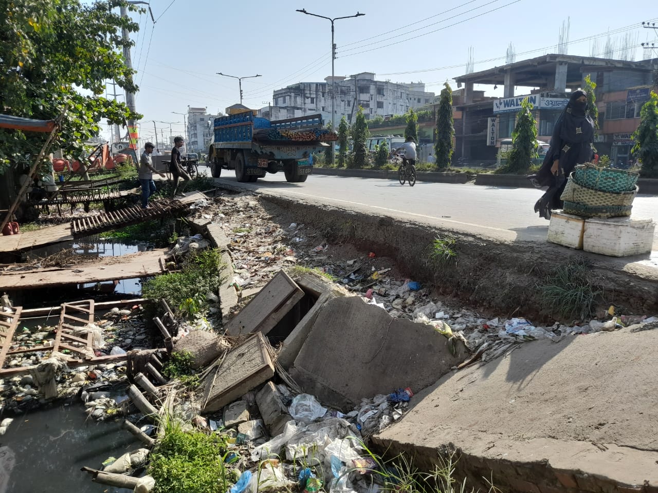 দেখা যায়, খালের ওপর থাকা লোহার তৈরি ব্রিজ দিয়ে ঝুঁকি নিয়ে পারাপার হচ্ছেন ক্রেতা এবং বিক্রেতারা। ক্ষয়ে পড়েছে চায়ের দোকানের সামনে মহাসড়কের নিচের মাটি। ঝুঁকিপূর্ণ এই সেতুগুলোর উপর দিয়ে পারাপার হচ্ছে দালান প্রস্তুতের রড। নুর নগর হাউজিং স্টেট এর সামনে থেকে উন্মুক্ত খালটির ওপর ফুটপাত থাকলেও চাঁন্দগাও থানা থেকে এক কিলোমিটার এলাকা পর্যন্ত খালটি একদমই উন্মুক্ত।