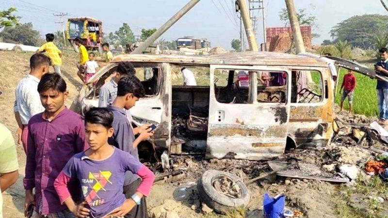 মাইক্রোবাস খাদে পড়ে সিলিন্ডার বিস্ফোরণ, নিহত ৪
