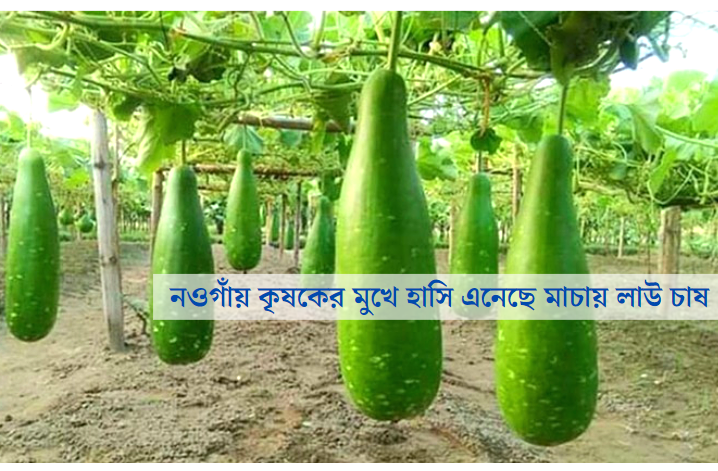 নওগাঁর রাণীনগরে ধান চাষের পাশাপাশি চাষিরা এখন নানান জাতের সবজিসহ মাচায় লাউ চাষ শুরু করেছে। সহজ পদ্ধতি এবং গাছের গুনগত মান ভালো থাকায় ফলন বেশি পেয়ে চাষিদের কাছে এখন মাচা পদ্ধতিতে লাউ চাষ বেশ জনপ্রিয় হয়ে উঠছে। এক চাষিকে দেখে প্রতিবেশি অন্য চাষিরাও মাচায় লাউ চাষ শুরু করেছেন।