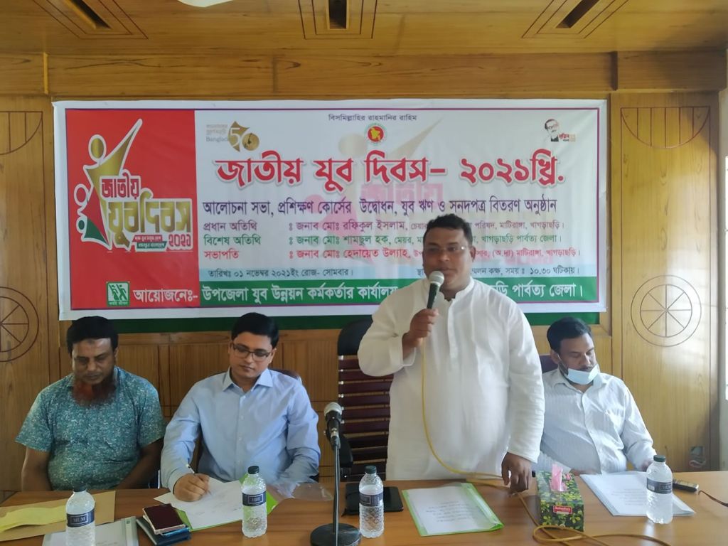 স্বাধীতার স্হপতি জাতির পিতা বঙ্গবন্ধু শেখ মুজিবুর রহমানের জন্মশতবার্ষিকী ও মহান স্বাধীনতার সুবর্ণজয়ন্তীতে বঙ্গবন্ধুর প্রতি গভীর শ্রদ্ধা স্বরূপ ‘জাতীয় যুবদিবস ২০২১’ এর প্রতিপাদ্য বিষয় হলো ‘দক্ষ যুব সমৃদ্ধ দেশ, বঙ্গবন্ধুর বাংলাদেশ’। এ স্লোগানকে সামনে রেখে খাগড়াছড়ি জেলার মাটিরাঙ্গায় উপজেলা যুব উন্নয়ন অধিদপ্তরের উদ্যোগে জাতীয় যুব দিবস উদযাপিত হয়েছে।
