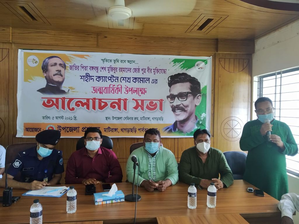 যথাযথ মর্যাদার মধ্য দিয়ে খাগড়াছড়ি জেলার মাটিরাঙ্গা উপজেলায় জাতির জনক বঙ্গবন্ধু শেখ মুজিবুর রহমান ও বঙ্গমাতা শেখ ফজিলাতুন্নেছা মুজিব’র জ্যেষ্ঠপুত্র, মুক্তিযুদ্ধের অন্যতম সংগঠক বিশিষ্ট ক্রীড়া ও সংস্কৃতি সংগঠক ও বীর মুক্তিযোদ্ধা শহীদ ক্যাপ্টেন শেখ কামালের ৭২তম জন্মবার্ষিকী উদযাপন।