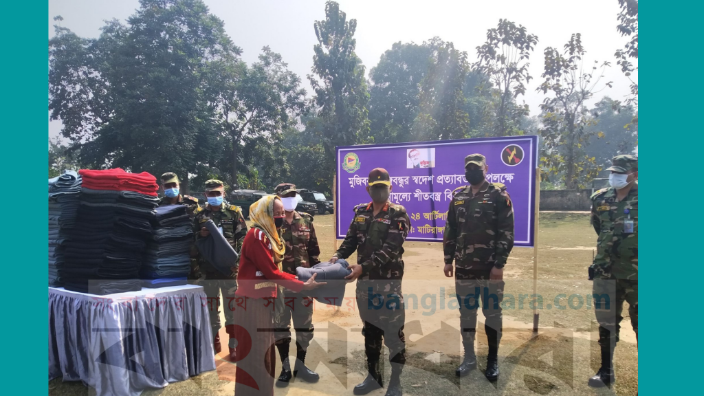 মাটিরাঙ্গায় শীতবস্ত্র বিতরণ করেছে বাংলাদেশ সেনাবাহিনী গুইমারা রিজিয়ন