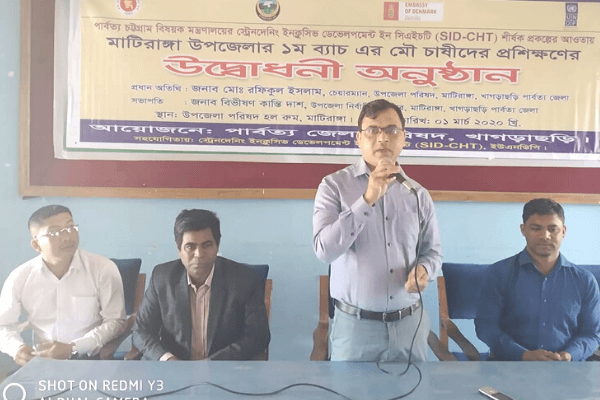 খাগড়াছড়ি জেলার মাটিরাঙ্গা উপজেলায় টেকসই মৌ চাষ উন্নয়ন এবং মধু বিপননের মাধ্যমে মৌ চাষীদের আয় বৃদ্ধিকরণ শীর্ষক কর্মশালা অনুষ্ঠিত হয়েছে।