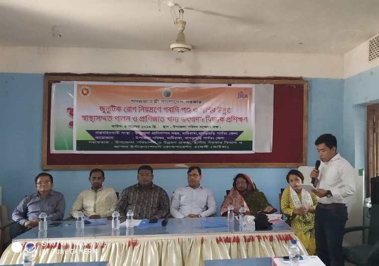 খাগড়াছড়ি জেলার মাটিরাঙ্গা পৌরসভা ও মাটিরাঙ্গা সদর ইউনিয়ন পরিষদের বিভিন্ন খামারীদের নিয়ে জুনোটিক রোগ নিয়ন্ত্রণে গবাদি পশু ও পাখির উন্নত জাত প্রানিজ খাদ্য উৎপাদন বিষয়ক প্রশিক্ষণ অনুষ্ঠিত হয়েছে।