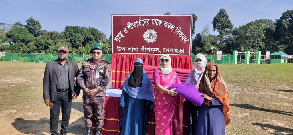 পার্বত্য খাগড়াছড়ি জেলার মাটিরাঙ্গা উপজেলার পলাশপুর জোনের উদ্যোগে উপ-শাখা সীপকস খেদাছড়া ব্যাটালিয়ন (৪০বিজিবি) এর সাধারন সম্পাদিকা মাহফুজা সালাহউদ্দিন লিমা কর্তৃক গুইমারা রিজিয়ন থেকে প্রাপ্ত শীতবস্ত্র প্রত্যান্ত অঞ্চলের অসহায় হতদরিদ্র শীতার্ত পাহাড়ি-বাঙালিদের মাঝে ২ শতাধিক শীতবস্ত্র বিতরণ করা হয়েছে।
