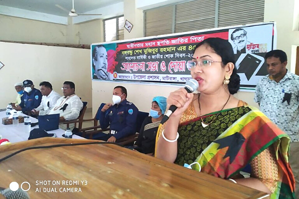 উপজেলা যুব উন্নয়ন কর্মকর্তা শেখ আশ্ররাফ উদ্দিনের সঞ্চালনায় জাতীয় শোক দিবসের আলোচনা সভায় সভাপতিত্ব করেন মাটিরাঙ্গা উপজেলা নির্বাহী অফিসার তৃলা দেব।