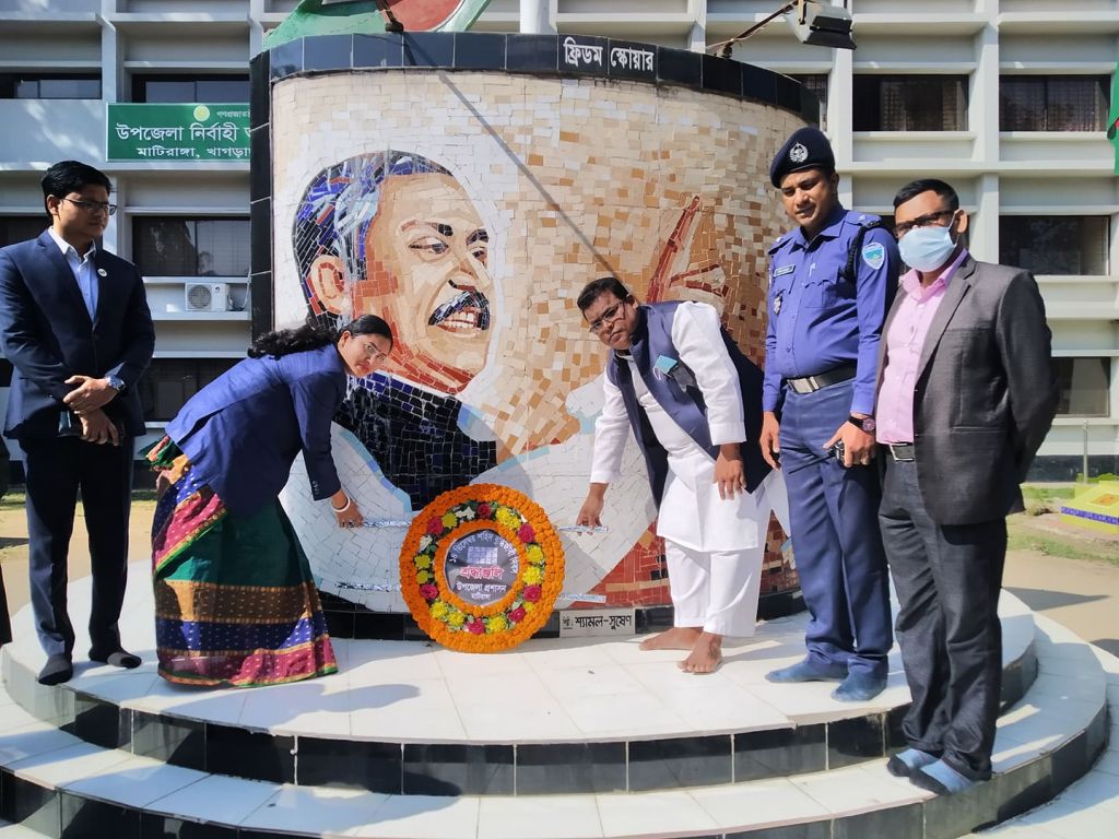 এর আগে মাটিরাঙ্গা উপজেলা পরিষদের চেয়ারম্যান মো. রফিকুল ইসলাম ও মাটিরাঙ্গা উপজেলা নির্বাহী অফিসার তৃলা দেব বঙ্গবন্ধুর প্রতিকৃতিতে পুষ্পস্তবক অর্পণ করে জীবন উৎসর্গকারী বুদ্ধিজীবীদের প্রতি শ্রদ্ধা নিবেদন করেন।