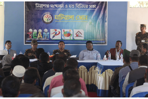 মাটিরাঙ্গা জোনে মাসিক নিরাপওা সম্মেলনও মতবিনিময় সভায় অন্যান্যের মাঝে বক্তব্য রাখেন, মাটিরাঙ্গা জোনের জোনাল স্টাফ অফিসার মেজর আরেফিন মোহাম্মদ শাকিল, মাটিরাঙ্গা উপজেলা পরিষদের চেয়ারম্যান মো. রফিকুল ইসলাম, মাটিরাঙ্গা উপজেলা নির্বাহী অফিসার বিভীষণ কান্তি দাশ, মাটিরাঙ্গা পৌরসভার মেয়র মো. শামছুল হক, মাটিরাঙ্গা থানার অফিসার ইনচার্জ মো. সামসুদ্দীন ভূইঁয়া, মাটিরাঙ্গা উপজেলা স্বাস্থ্য কমপ্লেক্সের আবাসিক মেডিকেল অফিসার মো. ওমর ফারুক, মাটিরাঙ্গা ফরেস্ট রেঞ্জ কর্মকর্তা মো. তারিকুল ইসলাম, মাটিরাঙ্গা উপজেলা আওয়ামী লীগের সাধারণ সম্পাদক সুবাস চাকমা, মাটিরাঙ্গা প্রেসক্লাবের সভাপতি এম এম জাহাঙ্গীর আলম, মাটিরাঙ্গা সদর ইউনিয়ন পরিষদের চেয়ারম্যান হিরন জয় ত্রিপুরা, মাটিরাঙ্গা পৌরসভার প্যানেল মেয়র কাউন্সিলর মো. আলা উদ্দিন লিটন, পার্বত্য নাগরিক পরিষদের কেন্দ্রীয় কমিটির সাংগঠনিক সম্পাদক মো. মাঈন উদ্দিন, পৌর কাউন্সিলর মো. শহিদুল ইসলাম সোহাগ, প্রমুখ।