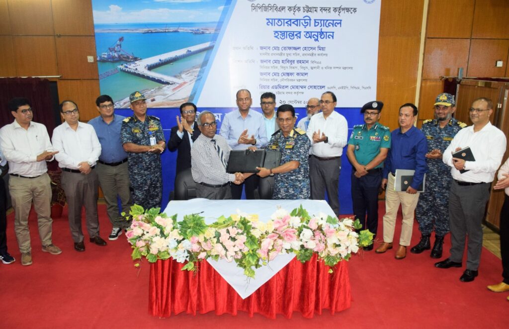 চট্টগ্রাম বন্দর কর্তৃপক্ষের ( চবক) কাছে মাতারবাড়ি গভীর সমুদ্র বন্দর চ্যানেল আনুষ্ঠানিকভাবে হস্তান্তর করেছে কোল পাওয়ার জেনারেশন কোম্পানি বাংলাদেশ লিমিটেড (সিপিজিসিবিএল)।