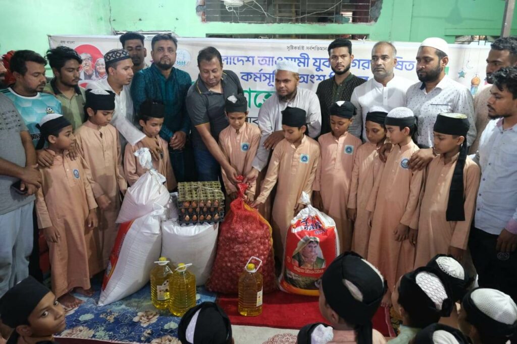বাংলাদেশ আওয়ামী যুবলীগের কেন্দ্রীয় কর্মসূচির অংশ হিসেবে মাদ্রাসার শিক্ষার্থীদের মাঝে খাদ্য সামগ্রী বিতরণ করেছে যুবলীগ নেতা দেবাশীষ পাল দেবু।