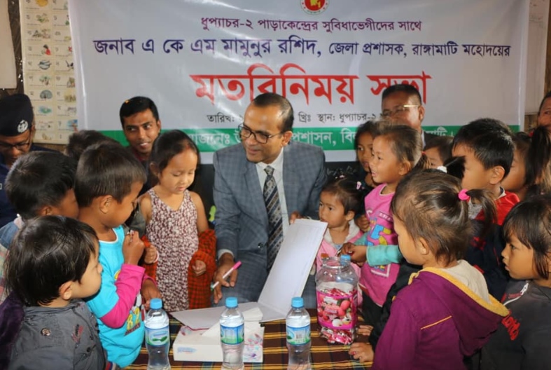 জেলা প্রশাসক একেএম মামুরুর রশিদ বলেন, গত ৬ মার্চ ২০১৮ রাঙামাটি জেলা প্রশাসক হিসাবে যোগদান করি। আমি রাঙামাটি জেলা প্রশাসক হিসাবে যোগদানের পর হতে এপর্যন্ত সরকারের গৃহীত কর্মসূচির আওতায় প্রকল্প সমূহ এলাকার উন্নয়নে সকলের সার্বিক সহযোগিতায় বাস্তবায়ন করে যাচ্ছি। তবে এই এলাকার বৃত্তশালীদের আরো সহযোগিতা পেলে উন্নয়ন করা সহজতর হতো। আমি যথেষ্ট চেষ্টা করছি এই এলাকার গরিব অসহায় হতদরিদ্র লোকদের কিছু দিয়ে যেতে। তবে উন্নয়ন করার স্বাদ আছে তেমন স্বাধ্য নেই। কারন আমার বরাদ্দ সীমিত। তার পরও যথাযথ চেষ্টা করছি গরিব অসহায় মানুষদের পাশে থাকতে।