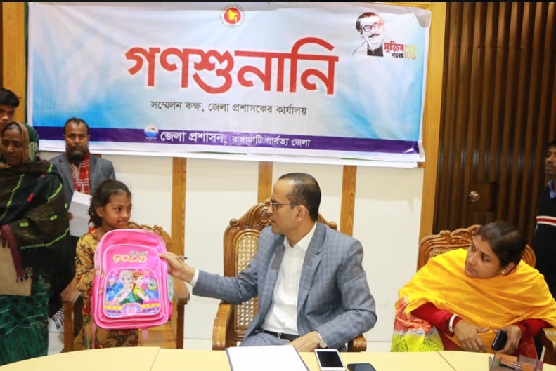 জেলা প্রশাসক রাঙামাটির উন্নয়ন, অবহেলিত জনপথ, শিক্ষা চিকিৎসা সংস্কৃতি, তৃণমূল পর্যায়ে জায়গা জমি নিয়ে বিরোধ ও মামলা মোকাদ্দমা বিষয় সমস্যার সমাধান করে থাকেন। প্রতিদিন দিন তো আর্থিক সহায়তা আছেই। এছাড়া সপ্তাহের প্রতি বুধবার তিনি জেলার সাধারণ মানুষের কাছ থেকে তাদের সুঃখ দুঃখের কথা শুনেন। প্রতি বুধবারে জেলা প্রশাসক গণশুনানির মাধ্যমে সেলাই মেশিন বিতরণ, ফ্রি ওষধ বিতরণ ও বিনামূলে শিক্ষার্থীদের মধ্যে বই বিতরণসহ নগদ অর্থ প্রদান করেন।