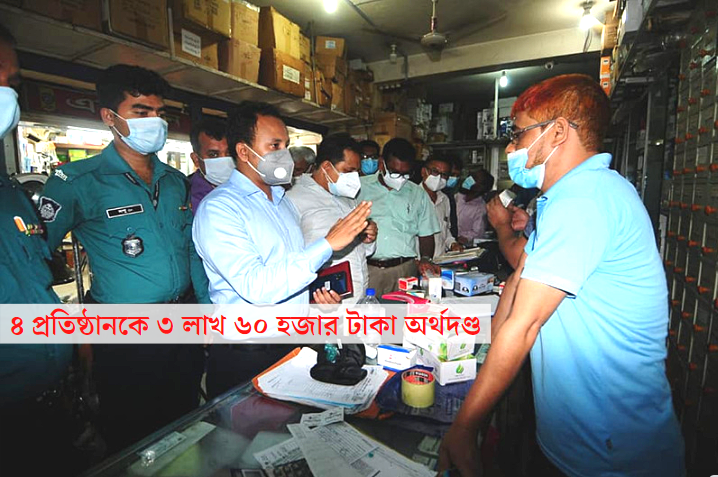 অভিযানে মানহীন ও ত্রুটিপূর্ণ থার্মাল স্ক্যানার, পালস অক্সিমিটার, স্ফিগম্যনিটার, ডাইবেটিক টেস্টার, সার্জিক্যাল মাস্ক, স্যানিটাইজার, সুরক্ষাসামগ্রী বিক্রয় ও ওষুধ প্রশাসন অধিদপ্তরের লাইসেন্স না থাকায় পাঁচলাইশ থানার মুন্নি প্লাজার রওশন এন্টারপ্রাইজকে দুই লক্ষ টাকা, কোতোয়ালী থানার আন্দরকিল্লার তাজ এন্টারপ্রাইজকে এক লক্ষ টাকা, এবি সার্জিক্যালকে পঞ্চাশ হাজার টাকা ও একুশে সার্জিক্যালকে দশ হাজার টাকা অর্থদণ্ড দেয়া হয়।