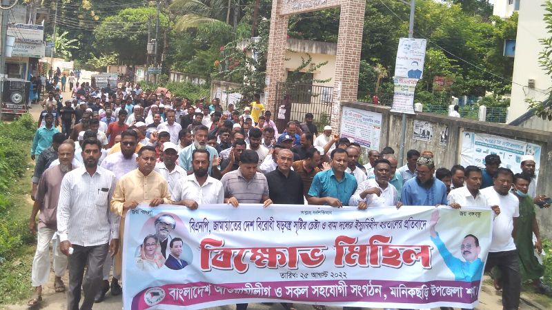 বৃহস্পতিবার (২৫ আগস্ট) দুপুর ১২টায় উপজেলা আওয়ামী লীগ কার্যালয় থেকে বিক্ষোভ মিছিলটি বের হয়ে চট্টগ্রাম-খাগড়াছড়ি আঞ্চলিক সড়ক প্রদক্ষিণ করে মানিকছড়ি বাজারে বিক্ষোভ সমাবেশ শেষে আবার দলীয় অফিসে এসে বিক্ষোভ মিছিলটি শেষ হয়।