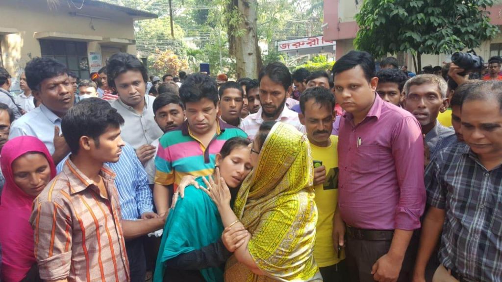 লাশ ঘরের পাশে কাঁদতে কাঁদতে বার বার জ্ঞান হারিয়ে ফেলছিলেন।