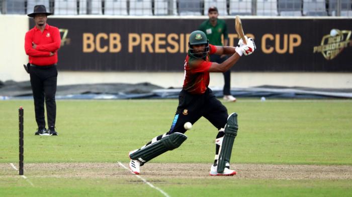তিন দলকে নিয়ে মিরপুরে আজ শুরু হয়েছে বিসিবি প্রেসিডেন্টস কাপ। উদ্বোধনী দিনে মাহমুদউল্লাহ একাদশ মুখোমুখি নাজমুল একাদশের। আগে ব্যাটিং করে মাহমুদউল্লাহর দল নাজমুলের হোসেনের দলকে ১৯৭ রানের লক্ষ্য দেয়। মিরপুরে পেসারদের তাণ্ডবে ৪৭.৩ ওভারে ১৯৬ রানে অলআউট মাহমুদউল্লাহ একাদশ। জয়ের জন্য ছোট একটি লক্ষ্যই পেয়েছে নাজমুলের দল।