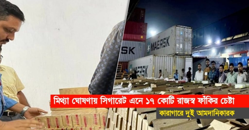 মিথ্যা ঘোষণা দিয়ে উচ্চ শুল্কের সিগারেট আমদানি করে রাজস্ব ফাঁকির চেষ্টা করার অভিযোগে দুই আমদানিকারকের জামিন না মঞ্জুর করে কারাগারে পাঠিয়েছে চট্টগ্রামের একটি আদালত। ওই দুই আমদানিকারক দুর্নীতি দমন কমিশনের (দুদক) মামলার আসামি।