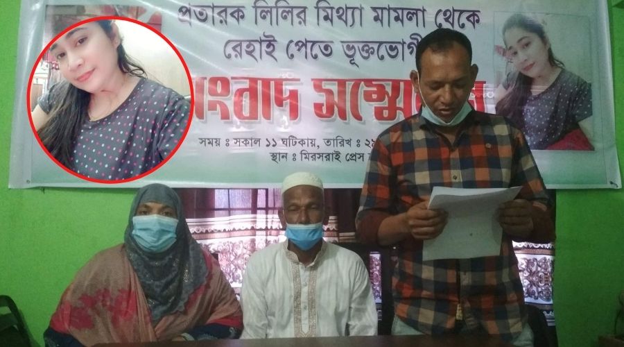 রোকসাানা আক্তার প্রকাশ ঢাকাই সুন্দরী প্রতারক লিলির মিথ্যা মামলার প্রতিকার চেয়ে সংবাদ সম্মেলন করেছে মিরসরাইয়ের প্রবাসী পরিবার।