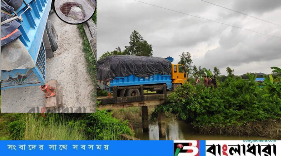 মিরসরাইতে ঝুঁকিপূর্ণ ব্রীজে আটকে গেলো খাদ্য গুদামের গাড়ী