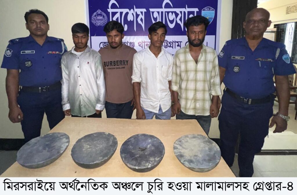 মিরসরাইয়ে অর্থনৈতিক অঞ্চলে চুরি হওয়া মালামালসহ গ্রেপ্তার ৪