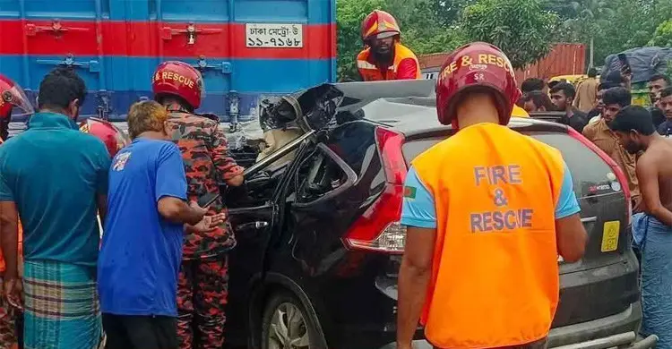 পুলিশ ও প্রত্যক্ষদর্শী সূত্রে জানা গেছে, আজ সকালে ঢাকা-চট্টগ্রাম মহাসড়কের ঠাকুরদিঘী এলাকায় রাস্তার পাশে দাঁড়িয়ে থাকা চট্টগ্রামমুখী লেনে থাকা একটি কাভার্ড ভ্যানকে ঢাকার উত্তরা থেকে আসা একটি প্রাইভেটকার নিয়ন্ত্রণ হারিয়ে পেছন থেকে ধাক্কা দিলে ঘটনাস্থলেই বাবা ও মেয়ে নিহত হন।