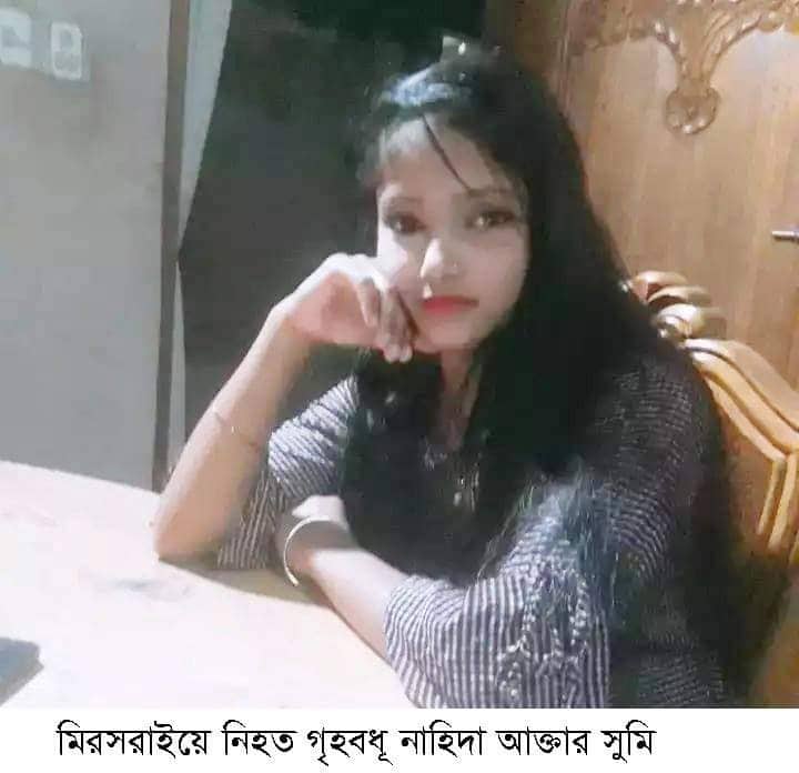 চট্টগ্রামের মিরসরাইয়ে এক গৃহবধূকে হত্যার অভিযোগ উঠেছে স্বামী ও শশুর-শাশুড়ির বিরুদ্ধে। নিহত গৃহবধূর নাম নাহিদা আক্তার সুমি (২০)।