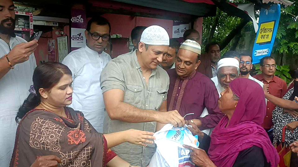 শুক্রবার (৫ জুলাই) উপজেলার বিভিন্ন স্থানে ঘুরে পানিবন্দি দুই হাজার পরিবারের মাঝে এই ত্রাণ সামগ্রী বিতরণ করেন।