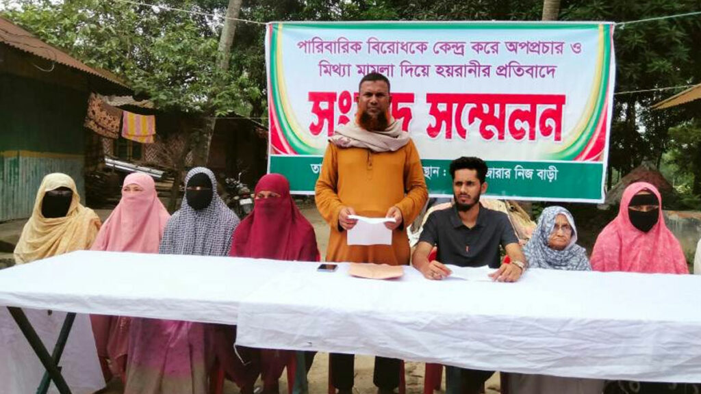 মিরসরাইয়ে পারিবারিক বিরোধকে কেন্দ্র করে সামাজিক যোগাযোগ মাধ্যমে অপপ্রচার ও মিথ্যা মামলা দিয়ে হয়রানীর প্রতিবাদে সংবাদ সম্মেলন করেছে তাইফ উদ্দিন নামে এক আওয়ামী লীগ নেতা। বৃহস্পতিবার (২২ জুন) সকালে উপজেলার পশ্চিম জোয়ার গ্রামে নিজ বাড়িতে পরিবারের সদস্যদের নিয়ে সংবাদ সম্মেলন করেন ১নং করেরহাট ইউনিয়নের ২নং ওয়ার্ড আওয়ামী লীগের সাধারণ সম্পাদক তাইফ উদ্দিন।