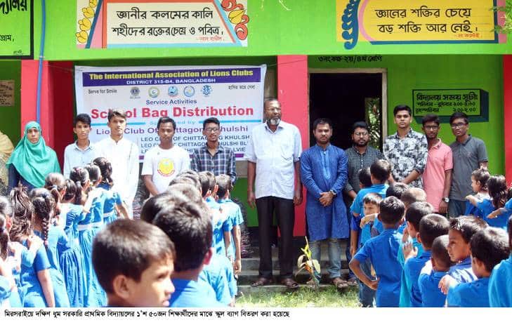 মঙ্গলবার (১৫ অক্টোবর) সকালে লায়ন্স ক্লাব অব চিটাগং খুলশীর অর্থায়নে ও লিও ক্লাব অব চিটাগং খুলশী ব্লু, লিও ক্লাব অব চিটাগং হিলভিউ ও লিও ক্লাব অব চিটাগং খুলশী এর সহযোগিতায় স্কুল ব্যাগ বিতরণ করা হয়।