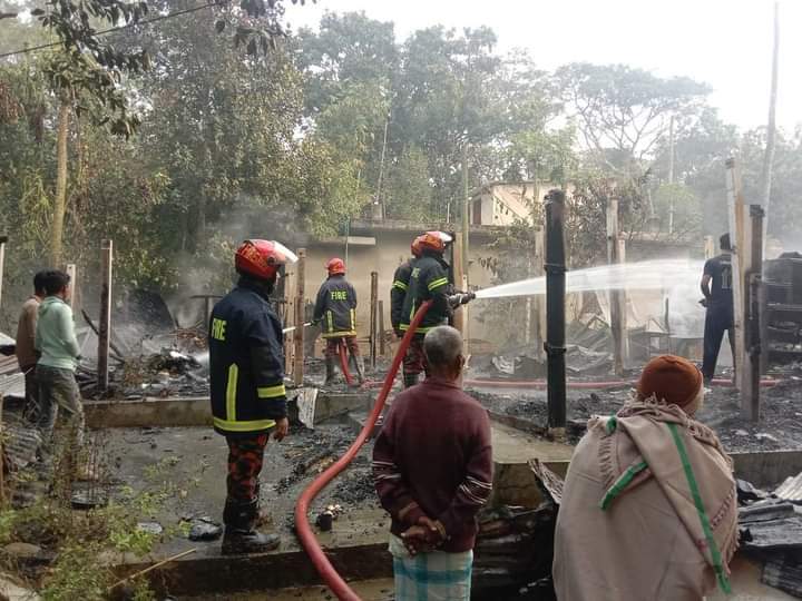 বৃহস্পতিবার (২৬ জানুয়ারি) উপজেলার ধুম ইউনিয়নের ৬নং ওয়ার্ডের দক্ষিণ নাহেরপুর গ্রামের হেমেন্দ্র মহাজন বাড়ির হেমেন্দ্র কুমার নাথের ছেলে শ্যামল চন্দ্র নাথ ও ধুম ইউনিয়ন পরিষদের মহিলা গ্রাম পুলিশ বিনা রানী দেবীর বসতঘরে এ দুর্ঘটনা ঘটে।