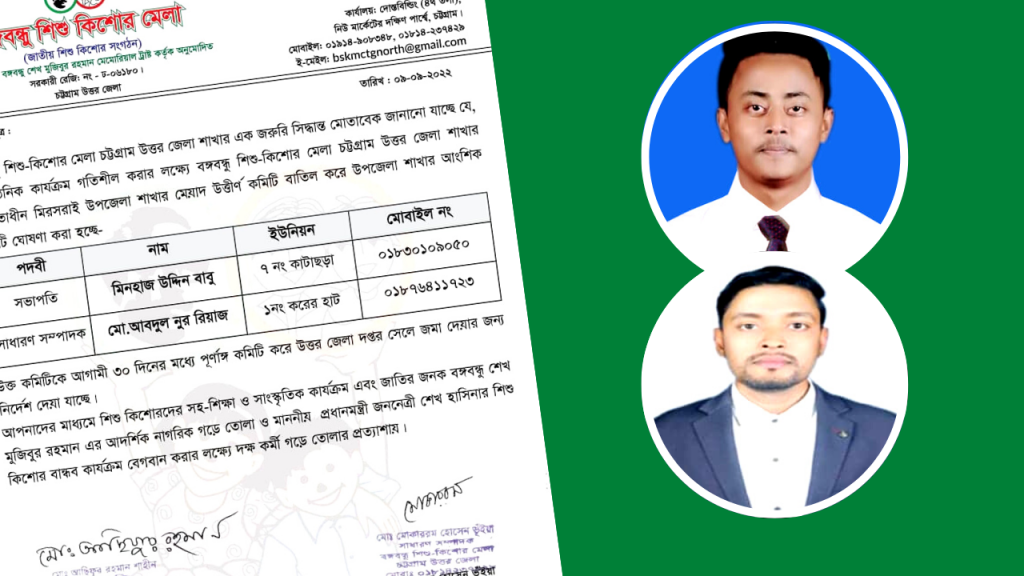 বঙ্গবন্ধু মেমোরিয়াল ট্রাস্ট কর্তৃক অনুমোদিত জাতীয় শিশু-কিশোর সংগঠন বঙ্গবন্ধু শিশু-কিশোর মেলার মিরসরাই উপজেলা শাখার নতুন কমিটি গঠন করা হয়েছে।