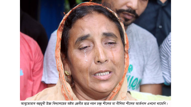 সড়ক দুর্ঘটনায় আহত হওয়ার পর নয়ন শীল সাড়ে ৫ মাস চিকিৎসাধীন থাকার পর মারা যায়। নয়ন শীলের মা নীলিমা শীল কেঁদে কেঁদে বলেন, ‘আমার ছেলে মারা যাওয়ার পর আমার শেষ অবলম্বন আর কিছু নেই। নয়নের পিতার মৃত্যুর পর নয়নকে ঘিরে আমি স্বপ্ন দেখেছিলাম। পড়ালেখা করে সে সংসারের হাল ধরবে। নয়ন আমাকে বলত মা তোমাকে আমি পড়ালেখা করে বড় হয়ে সুখী করে তুলব। আমি যদি আমার ছেলেকে লেখাপড়া করতে না পাঠাতাম আজ আমার বুকের মানিক ধন আমাকে ছেড়ে চলে যেতো না। আমার ছেলেকে নিয়ে সুন্দর সংসার গড়ে তোলা হলো না। আমারতো খোঁজখবর নেওয়ার কেউ নেই, দুর্ঘটনার সময় থেকে প্রতি বছর গিয়াস সাহেব আমাদের সবসময় খোঁজখবর নেন।’