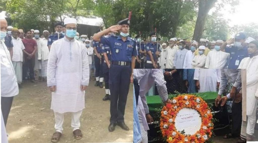 শনিবার সকাল ১১ টায় নিজ এলাকায় নামাজে জানাযা শেষে দাফন করা হয়। এর আগে উপজেলা নির্বাহী অফিসার মোঃ শাহিদুল আলমের নেতৃত্বে একদল চৌকস পুলিশ সর্বোচ্চ রাষ্ট্রীয় সম্মান গার্ড অব অনার প্রদান করেন।