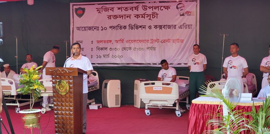 স্বাধীনতার মহান স্থপতি জাতির পিতা বঙ্গবন্ধু শেখ মুজিবুর রহমানের জন্মশতবার্ষিকী উদযাপন উপলক্ষে বাংলাদেশ সেনাবাহিনীর ১০ পদাতিক ডিভিশন, রামু সেনানিবাসের রক্তদান কর্মসূচি পালন করা হয়েছে।