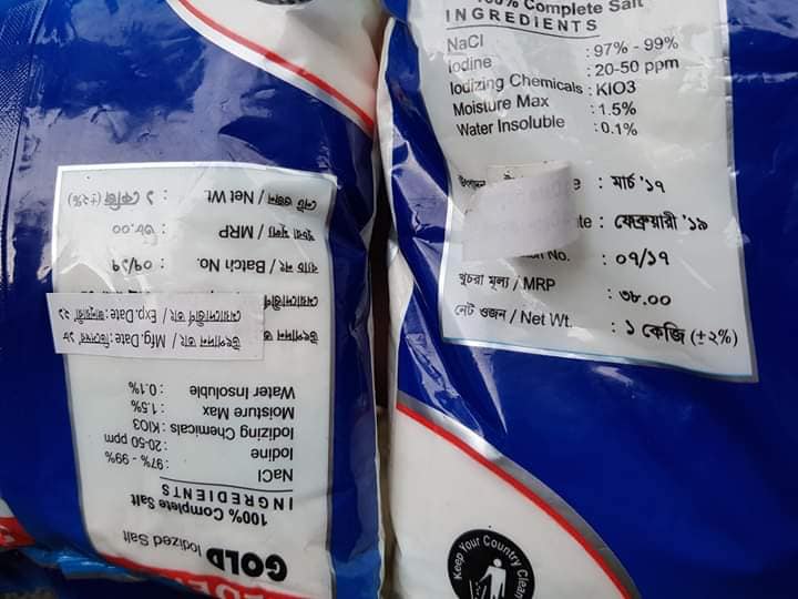 মেয়াদোত্তীর্ণ লবণের প্যাকেটে নতুন মেয়াদের স্টিকার