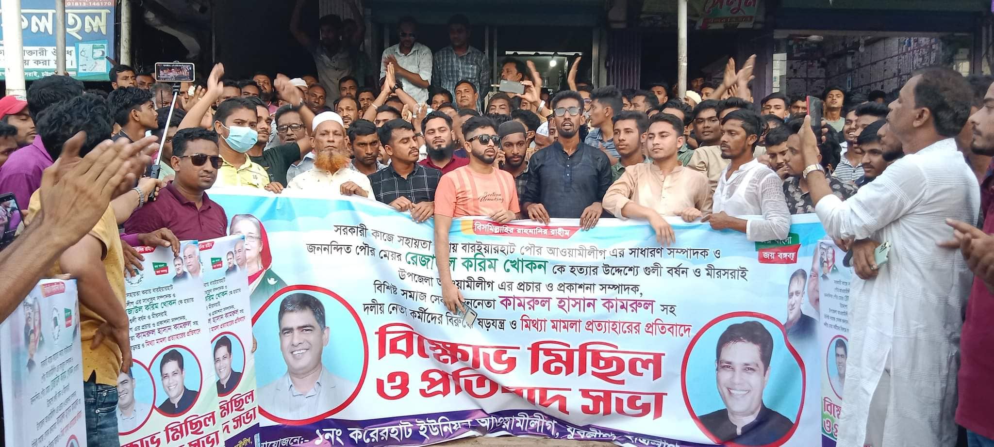 চট্টগ্রামের মিরসরাইয়ের বারইয়ারহাট পৌরসভার মেয়র রেজাউল করিম খোকনকে হত্যার উদ্দেশ্যে গুলি এবং উপজেলা আওয়ামী লীগের প্রচার সম্পাদক কামরুল হোসেনসহ দলীয় কর্মীদের বিরুদ্ধে মিথ্যা মামলার প্রতিবাদে বিক্ষোভ মিছিল ও সমাবেশ অনুষ্ঠিত হয়েছে। এসময় ফেনীর ফাজিলপুর ইউনিয়নের চেয়ারম্যান মুজিবুল হক রিপনের কুশপত্তলিকা দাহ করেন ইউনিয়ন আওয়ামী লীগ, যুবলীগ ও ছাত্রলীগের কর্মীরা।