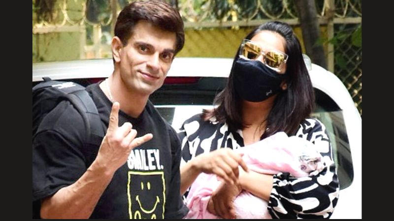 মেয়ে কোলে তারকা জুটি মুম্বাইয়ের বাড়িতে প্রবেশের আগেই উপস্থিত হয়েছিলেন আলোকচিত্রীরা।