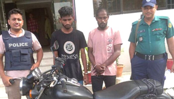 পাঁচলাইশ মডলে থানার ভারপ্রাপ্ত কর্মকর্তা (ওসি) মো. নাজমি উদ্দনি মজুমদার জানান, গত ৭ জুলাই বিকালে চট্টগ্রাম মেডিকেল কলজে হাসপাতাল ব্লাড ব্যাংকরে সামনে থেকে নুরুন্নবী আলম নামে এক যুবকের মোটরসাইকেল চুরি হয়। বৃহস্পতিবার দিবাগত রাতে তথ্যপ্রযুক্তির সহায়তায় হাটহাজারী থানার ফরহাদাবাদ ইউনিয়নে অভযিান চালিয়ে সংঘবদ্ধ চোরাই মোটরসাইকেল চক্রের দুই সক্রিয় সদস্যকে গ্রেফতার করা হয়।