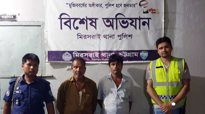 আটককৃতরা হলো— কক্সবাজার জেলার টেকনাফ উপজেলার হৃীলা ইউনিয়নের পানখালী গ্রামের মৃত আবুল হোসেনের পুত্র নুরুল আলম (৫৬) ও সাতক্ষীরা জেলার শ্যামনগর থানার রমজান নগর ইউনিয়নের কলনী পাড়ার ছোবহান আলী গাজীর পুত্র মোহাম্মদ আলী (৪৭)।