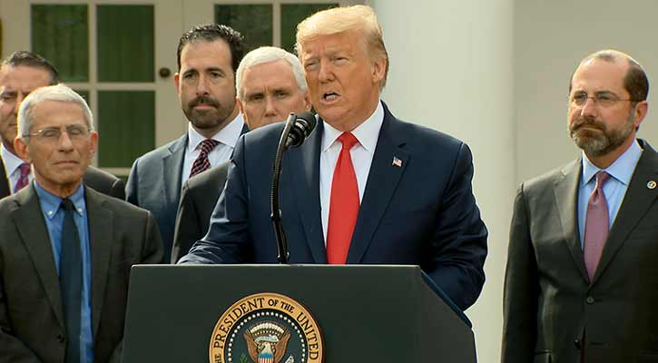 শুক্রবার (১৩ মার্চ) যুক্তরাষ্ট্রে করোনা আক্রান্ত ৪১ জনের মৃত্যুর পর এ ঘোষণা দিলেন ট্রাম্প।