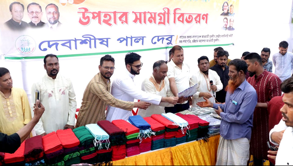 পবিত্র মাহে রমজান উপলক্ষে বাংলাদেশ আওয়ামী যুবলীগ চট্টগ্রাম মহানগরের সহ-সভাপতি দেবাশীষ পাল দেবুর উদ্যোগে বন্দর ইস্ট কলোনী বি টাইপ চত্বরে চার শতাধিক নিম্নআয়ের মানুষের মাঝে শাড়ি শার্ট ঈদ উপহার সামগ্রী বিতরণ করা হয়েছে।